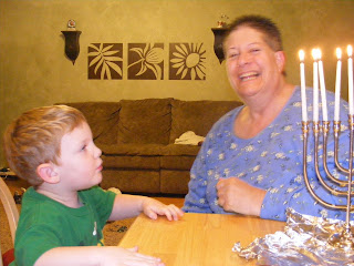 Don turned 33 yesterday. He got to watch the Patriots game (sorry, they didn't make it to the playoffs) and then have everybody over for the last night of Hanukkah and his birthday dinner. The kids had a blast helping him blow out the trick candles. Since he's 33, I thought I could list 33 reasons that I love him. (Thanks for the idea, Jossie.)